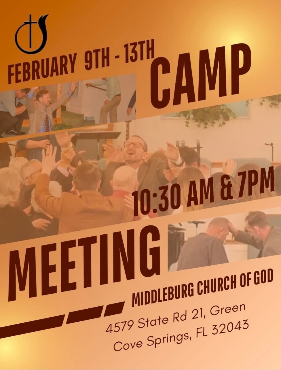 Save the Dates: Camp Meeting 2026 will be February 9th-13th! Service times will be 10:30 A.M. & 7:00 P.M. Our speakers will be Bishop Phil Wyatt in our morning services and our Pastor, Bishop Jamie Wyatt will be preaching our evening services (Pastor will also be preaching our Anniversary service on Sunday, February 8th @10:30 A.M.). Special singing each night by our Praise Team and our very own, Sis. Gracie Wyatt.